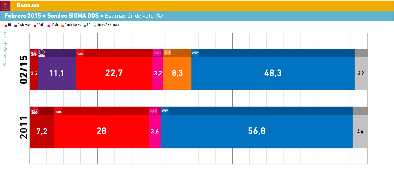 InicioBadajoz BADAJOZ, Febrero 2015. Sondeo SigmaDos 28.2.15 Ámbito: Badajoz Tamaño de la muestra: 400 Error muestral: ±5% Método: Tel. Fecha del trabajo de campo: 18-20 Feb. 2015 Autor: SigmaDos Cliente: Hoy Fuente: Hoy Etiquetas Badajoz Extremadura Hoy M_Ext Municipales Sigma Dos Spain Facebook Twitter
