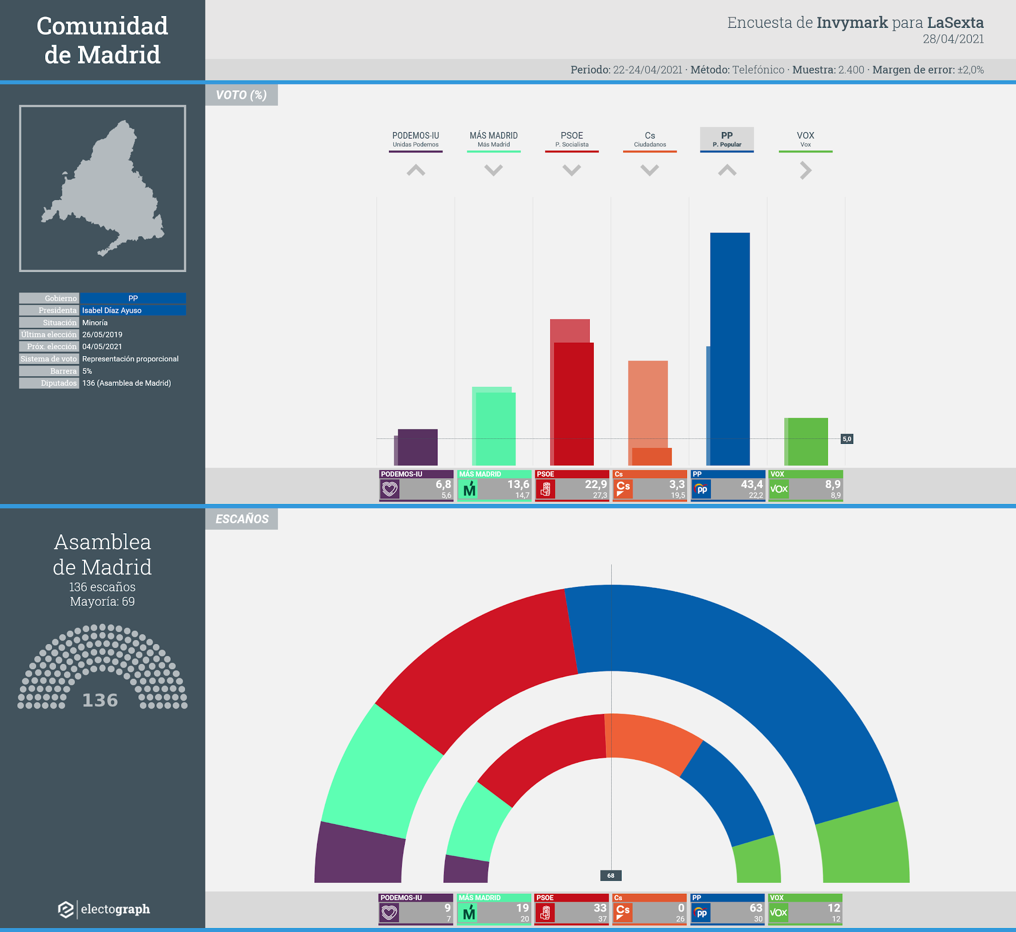 Encuesta para elecciones autonómicas en la Comunidad de Madrid realizada por Invymark por encargo de LaSexta.