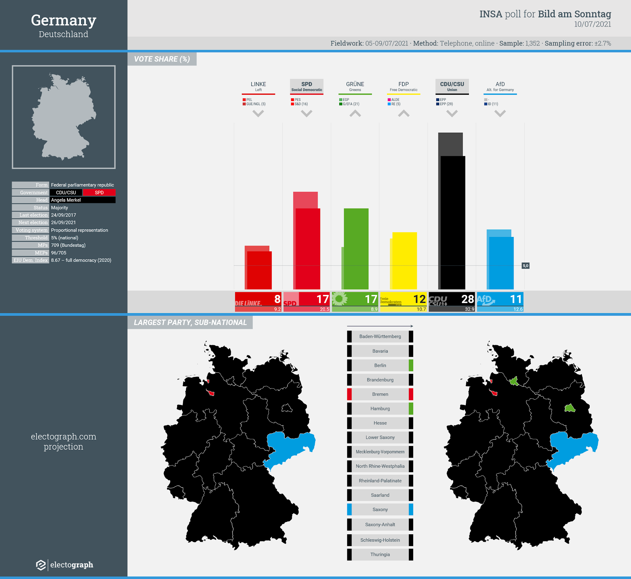 Opinion poll for the next German federal election carried out by INSA and commissioned by Bild am Sonntag.